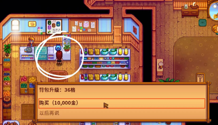 背包扩充是提升游戏效率的关键操作。玩家需要前往鹈鹕镇的皮埃尔杂货店,该店铺位于小镇广场北侧,营业时间为每天上午9点至下午5点,周三休息。当皮埃尔在柜台值守时,与其互动并点击收银台右侧标有FOR SELL的红色背包图标,即可进入升级界面。首次