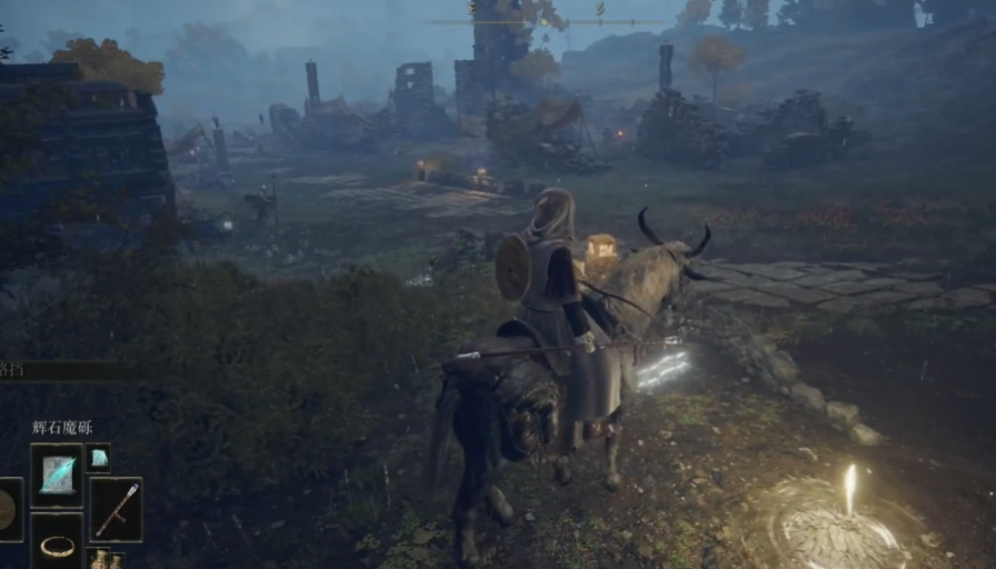 开局首要任务是激活赐福点并获取基础装备。离开初始洞窟后,直接前往艾蕾教堂激活第一个赐福点,这是后续快速旅行的关键节点。在教堂区域可以找到锻造台和商人,建议优先购买基础装备或制作书。随后前往关卡前方赐福点,与梅琳娜对话获得灵马哨笛,这是提升移