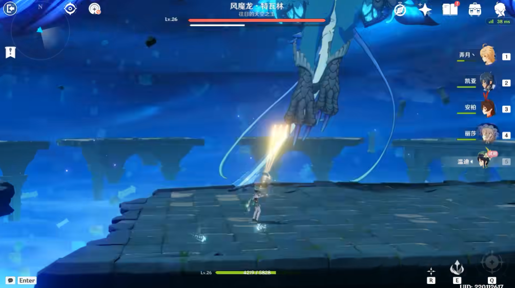 跨越上方封印是一个主线任务,主要涉及与风魔龙特瓦林的战斗。该任务分为两个阶段,第一阶段需要玩家在空中用射线射击风魔龙,同时注意躲避弹幕攻击。第二阶段则需在风魔龙的爪子落在平台时集中攻击,将其血条下方的白条打掉,使其落场。玩家需爬上风魔龙的脖