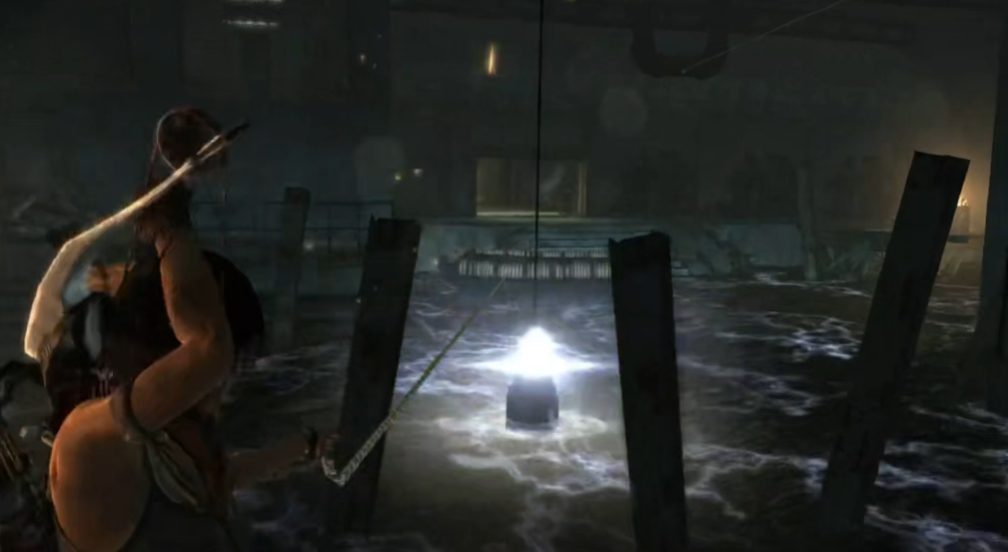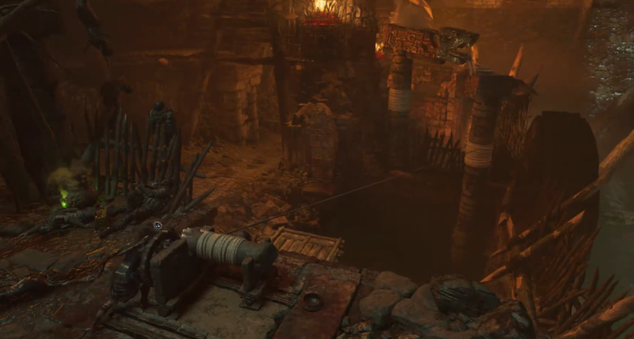贫民窟古墓是一个需要巧妙利用环境互动的解谜场景。进入古墓后,首先需将油桶扔到中央的升降梯上,利用重量使梯子下降。通常需要放置3个油桶即可让升降梯降至最低点,跳上升降梯并快速丢弃1个油桶,梯子会因重量减轻而上升。抓住时机从升降梯跳到左侧平台,