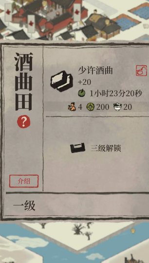 酒曲是一种非常重要的特产资源,而它只能在城市绍兴府里进行生产。若想获得酒曲,你必须前往并解锁绍兴府这一特定地图。进入绍兴府的城镇界面后,你需要找到并点击名为酒曲田的建筑,这个建筑的外观有点像小土坡,是专门用于生产酒曲的唯一设施。建造酒曲田本