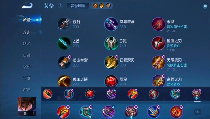 当前澜公认最强的出装主要有两套,高爆发秒杀流和半肉容错流,铭文则以百穿组合为核心。高爆发流出装顺序为贪婪之噬、抵抗之靴、宗师之力、破军、暗影战斧和末世,这套装备追求极致的瞬间伤害,宗师之力能强化使用技能后的下一次普攻,与澜的技能连招搭配能打