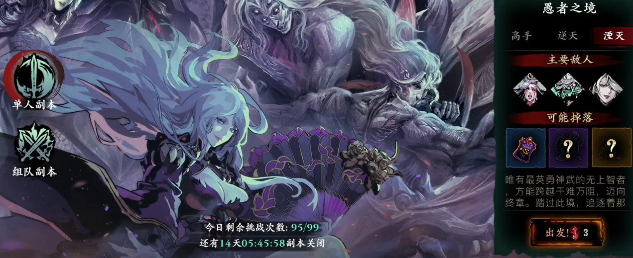 普通难度是面向新手的入门选择,这个难度下的敌人攻击力和生命值都比较低,主要作用是让刚接触该玩法的玩家熟悉连续挑战的战斗节奏和各个BOSS的技能机制,其掉落的奖励也以基础的装备和锻造材料为主,适合用来过渡和积累初期资源。困难难度则对玩家的操作