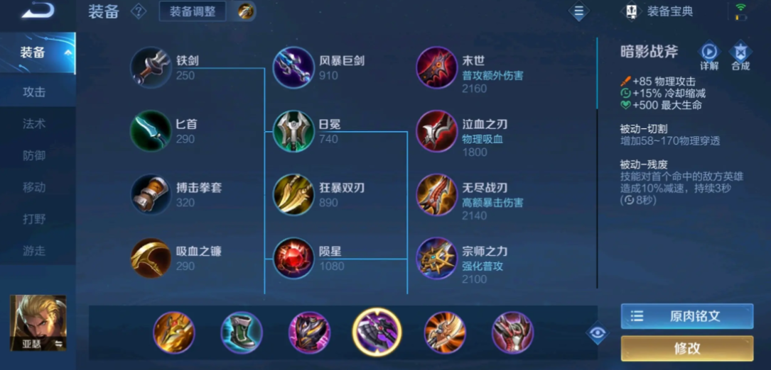 亚瑟作为对抗路常青树,其高胜率出装核心在于根据敌方阵容灵活选择装备,以暗影战斧和冰痕之握为基石,通过搭配不同防御装来应对多变战局。一套被验证有效的出装思路是:抵抗之靴、暗影战斧、冰痕之握、反伤刺甲、魔女斗篷,最后一件装备可根据情况选择不祥征