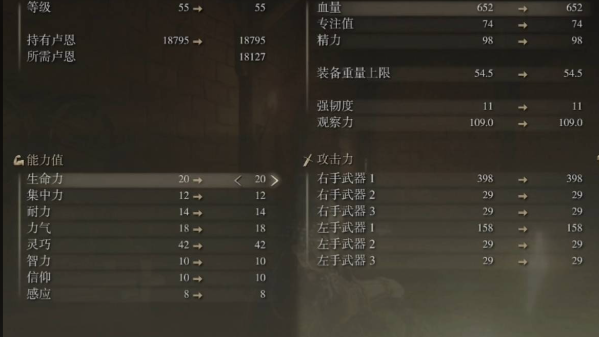 多周目阶段法师需调整加点策略应对更高难度。血量建议提升至60点避免被高伤害秒杀,耐力40点保证装备负重与翻滚性能。蓝条35点配合灵药可满足持续作战需求,力敏属性25点便于使用多类型武器。后期智力与信仰可按7:3比例分配,兼顾传统魔法与祷告类技能。这种配置在保证输出的同时提升生存与功能性,适合长期游玩与PVP场景。