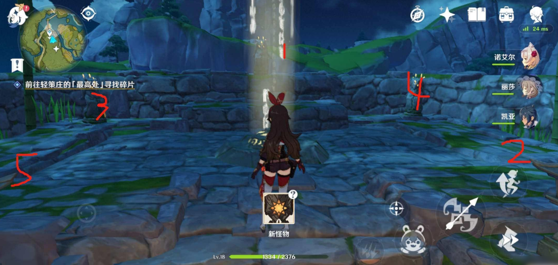轻策庄最高处的解谜需要按照特定顺序点亮岩尊像。最高处水池周围的岩尊像需分别面朝风龙废墟、雪山、庆云顶和璃月港方向,按1-2-4-7的顺序依次激活。西边河对岸的碎片需要通过文字提示解锁对应方位的石像,而无妄坡下方的碎片则需要击败遗迹守卫后完成小型解谜。每个解谜环节都配有文字提示,仔细观察环境中的线索是解谜关键。