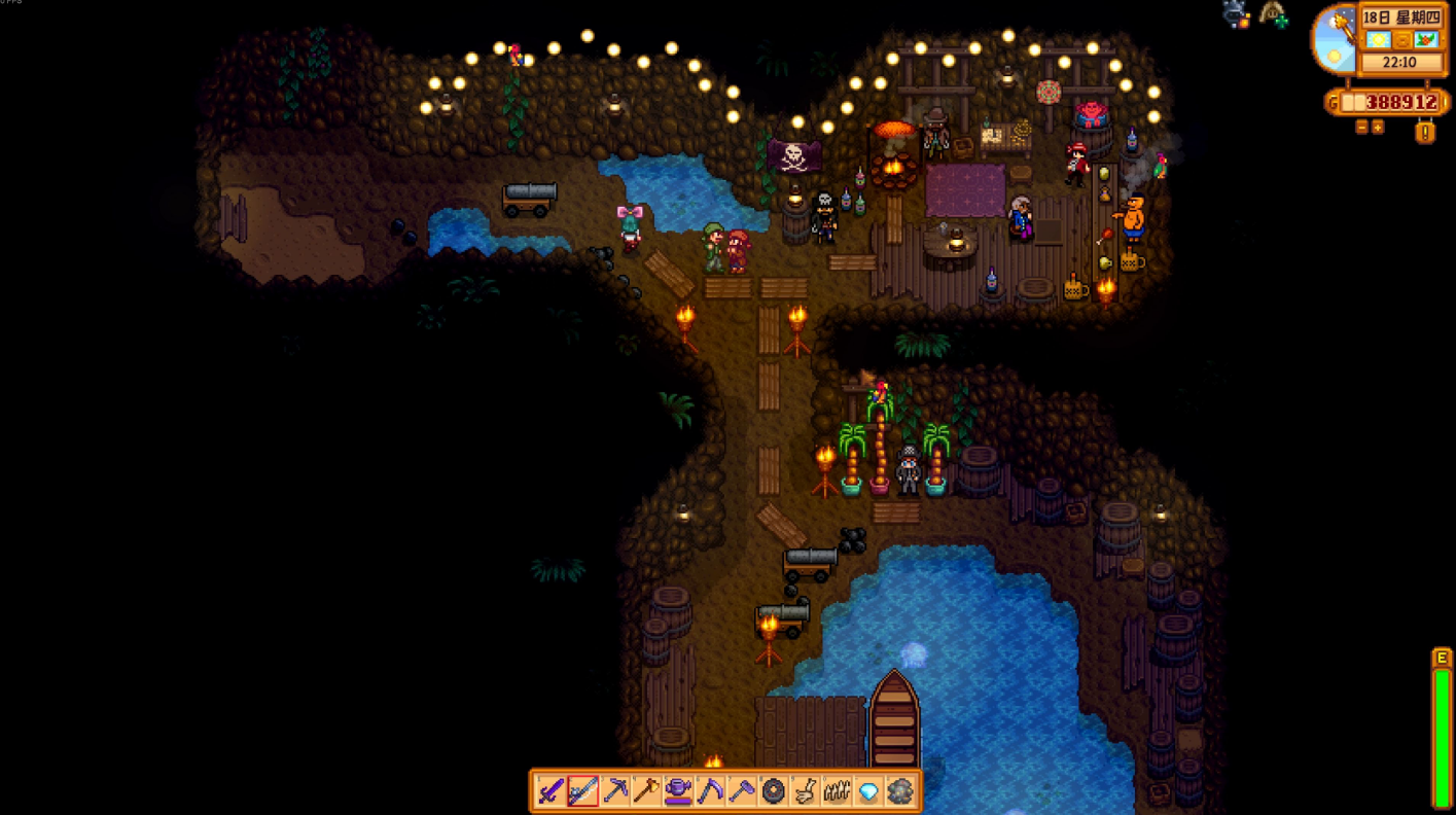 地狱探索的核心机制与普通矿洞存在差异。玩家可以使用喷壶浇灭熔岩创造路径,铱制喷壶效果最佳。部分楼层设有机关门,需激活所有按钮使指示灯变绿才能通行。第5层设有矮人商店,第10层则提供锻造台,可用火山晶石强化装备。地狱内无法钓鱼,但宝箱产出包含金色椰子等特殊物品,前提是玩家已通过其他方式获得过该物品。