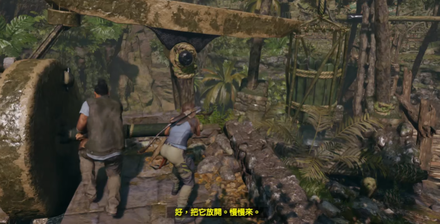 吊桥谜题是玩家遇到的第一个具有挑战性的机关。这个谜题需要利用水利系统和绳索箭矢的配合才能通过。关键步骤包括启动水塔机关、推动石轮引导水流、快速连接绳索等操作,整个过程需要精确的时机把握和合理的顺序安排。