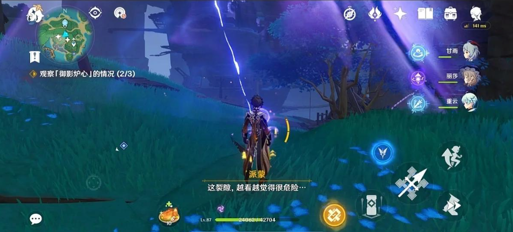 最后踏鞴砂区域有些地方需要雷种子才能进入,比如矿洞里的雷神瞳,位置较高,普通攀爬拿不到。可以从地灵龛顶部飞过去,或者找附近的岩石爬上去。如果觉得探索吃力,可以多带一些增加移动能力的角色,比如温迪或者万叶,他们的技能能帮助轻松到达高处。
