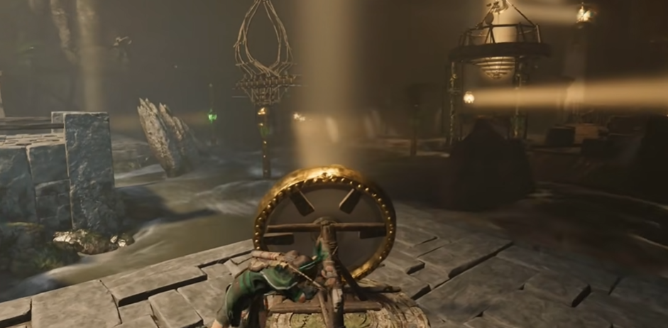 接下来咱们要回到刚开始的左手边位置,用最后一个灯笼烧掉机身内的货物。清理出空间后就能沿着残骸一路向上爬,最终拿到第一个大秘宝。过程中可能会遇到原路被水淹没的情况,这时候别慌,耐心寻找其他路径。有些地方需要推动铁笼或破坏阀门来引爆燃气开路,记得多利用绳箭和攀爬斧这些工具。