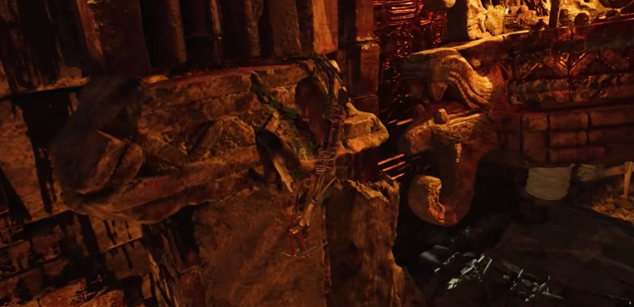 接下来要处理第二个机关,拉动第二个转杆会打开新的风口,这时中间通道的火焰会被吹灭。从平台右前方跳到中间通道时注意节奏,别被突然复燃的火苗伤到。成功跳到对面平台后往左走到底,就能看到古墓核心区域。这里要注意墙壁上的攀爬点颜色比较亮,跟着劳拉的视线方向找路准没错。如果遇到卡在缝隙里动弹不得的情况,记得快速切换武器就能脱困。