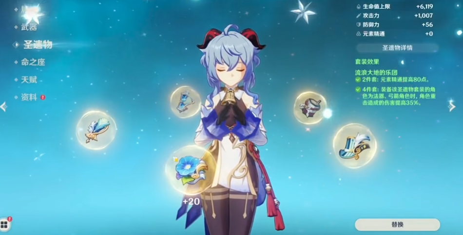 乐团套的套装效果非常适配依赖重击输出的角色。二件套提供80点元素精通,四件套则提升35%的重击伤害,特别适合法器或弓箭角色。比如甘雨的二段蓄力箭、可莉的重击爆炸,都能享受这套圣遗物的加成。如果主打元素反应,二件套的精通加成也能进一步提升伤害上限。