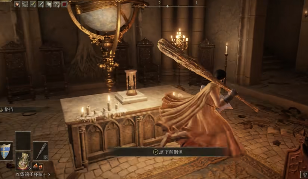 将颠倒像放置在书斋底层的台座上,整个空间会上下颠倒,玩家可从原本无法电梯井向下跳跃,抵达隐藏的螺旋楼梯区域。这一过程中需注意躲避瞬移出现的魔法教授米丽安,其攻击方式包括巨箭和光球散射的小箭,建议利用建筑结构规避伤害并寻找反击机会。击败米丽安后可获得法术天降魔法,同时书斋顶层的房梁上藏有蓝种子护符等物品,需攀爬梯子探索。