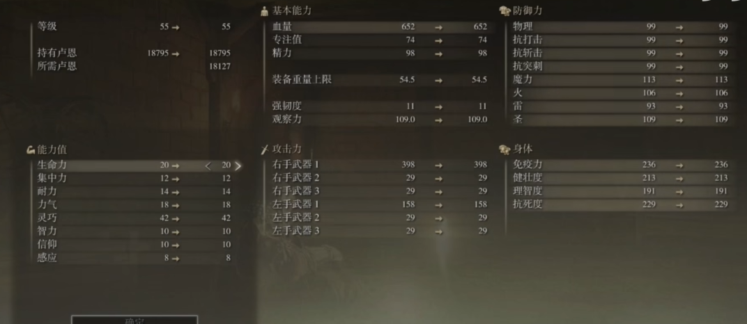 在艾尔登法环的前期阶段,角色升级的核心在于合理分配属性点并高效获取卢恩。游戏中的升级系统依赖卢恩作为经验值,玩家需在赐福点与梅琳娜对话后解锁升级功能。前期推荐优先提升生命值至15-20点,确保生存能力,随后根据职业需求分配力量、灵巧或智力等主属性。耐力同样重要,建议维持在能连续攻击并翻滚躲避的水平。感应属性前期无需投入,而武器补正属性应优先满足装备需求后再针对性强化。