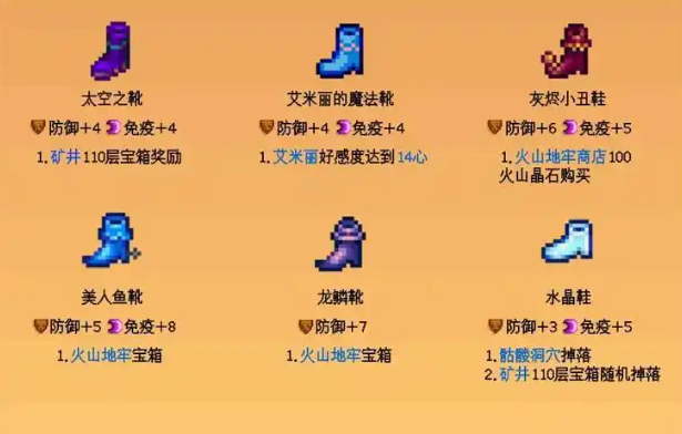 首先得知道,游戏里有几种顶级鞋子,比如太空靴和龙鳞靴,它们不仅能提供超高防御力,还能免疫各种负面效果。这些宝贝通常藏在矿洞深处或者完成特定任务后才能拿到,所以前期咱们得先打好基础,把矿洞探索和战斗技能练起来。