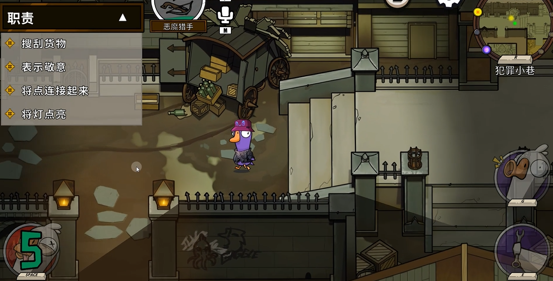 恶魔猎手是出现在血液港湾地图中的鹅阵营角色,这个角色取代了正义使者,是一个需要通过特定机制激活刀人能力的专家级角色。它的核心玩法围绕着腐化状态展开,玩家需要先让自己进入腐化,才能获得一次宝贵的刀人机会,这与可以直接刀人的常规带刀好人角色有本质区别。恶魔猎手获得刀人能力的唯一途径是进入腐化状态。触发腐化的方法主要有两种,第一种是被地图中的乌鸦角色感染,这会使你的腐化值大幅上升。第二种更主动的方法是收集散落在地图上的腐蚀品,当你成功收集到6个腐蚀品后,腐化进度会达到满值,从而进入可以刀人的腐化状态。