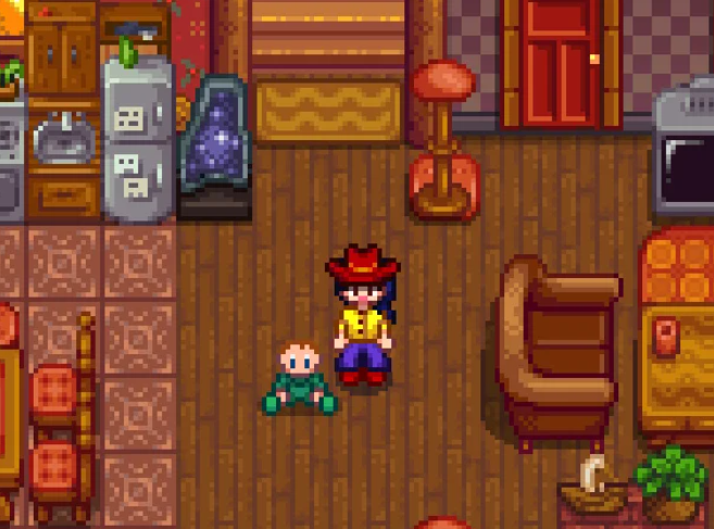 抚养孩子是婚姻生活的延伸玩法之一。要拥有孩子,首先需与配偶保持十颗心的好感度,并完成房屋的第二次升级以解锁育婴室。满足条件后,配偶有概率在睡前询问是否要孩子,若选择同意,孩子将在14天内出生。游戏内最多可拥有一男一女两个孩子,但孩子会永久保持幼儿形态,不会成长为成年人。