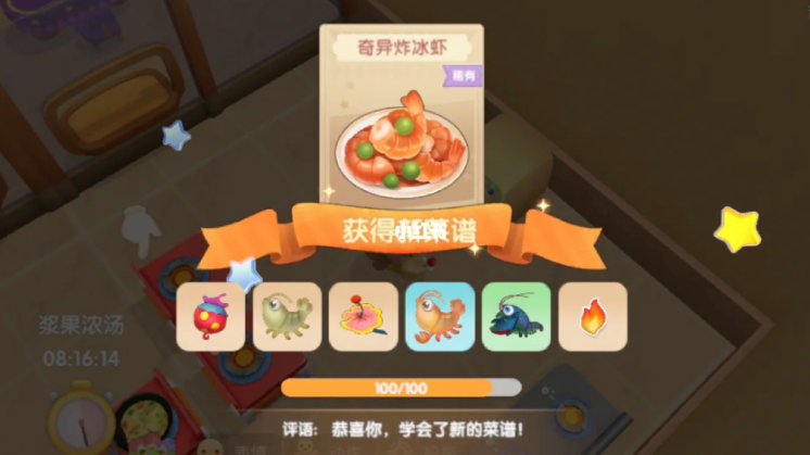 制作奇异炖龙虾需要准备3个小龙虾和3个茄子作为基础食材,同时搭配奇异果作为特殊配料。这道菜的稀有度为2星,解锁条件为厨师等级达到2级,烹饪时需使用中火,耗时约2小时,若超过10小时则会煮糊。餐厅售价为546摩尔豆,是一道性价比不错的菜品,适合前期快速积累资金。