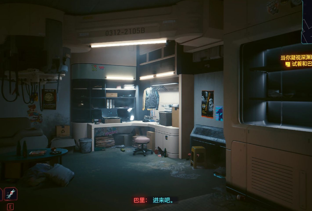 克里的支线任务脱缰会引导玩家前往日本街的暗物质实验室,传送至指定地点后需与服务人员对话表明身份才能进入。部分实验室则要求玩家具备足够的属性等级,如技术能力用于破解电子门锁,或肉体属性强行突破障碍。