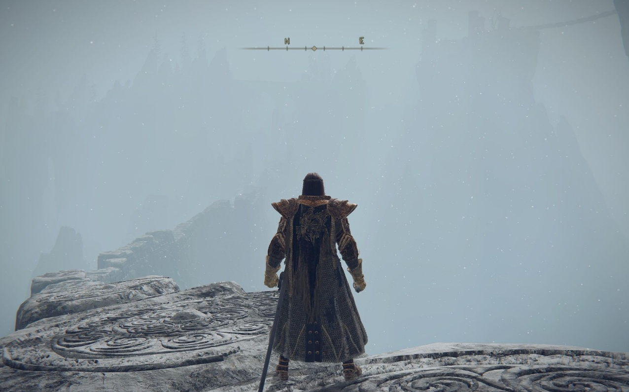 探索雪山区域时,需优先获取三张地图碎片以解锁完整地形。巨人山顶西部碎片位于洛德大升降机北部的遗迹石碑下方;东部碎片需绕行北侧湖泊并穿过窄桥;化圣雪原碎片则需沿密道向北行进。地图标记的赐福点包括通往圣树的密道和监视者要塞,后者可获取巨人祷告书等关键道具。