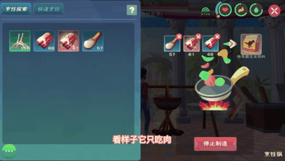 抓它可不是随便打打就能搞定的,咱们得准备好足够的装备和饲料。饲料方面,黑暗霸王龙喜欢吃象拔蚌、罕见肉和稀有肉合成的饲料,最少得准备55包才稳当。象拔蚌可以用大闸蟹钓,罕见肉得去打野怪王,稀有肉则是45级以上的野怪掉落。装备方面,建议带上水晶套和足够的弓箭,毕竟这家伙攻击力很高,稍微不注意就会被秒。