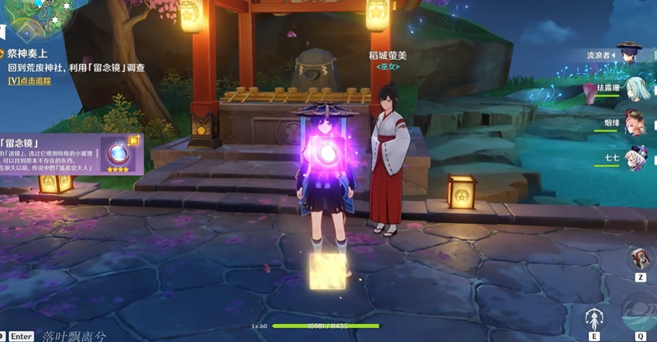 触发绀田事话任务的地点在稻妻·绀田村上方的传送锚点附近,玩家需在天狐像前与NPC对话开启任务。完成该任务后,系统会自动引导玩家接取祭神奏上任务,要求前往鸣神大社调查。抵达鸣神大社山顶后,与巫女稻城萤美对话,她会将留念镜交给玩家,并解释其用途。需若玩家未按顺序完成任务,可能会卡在后续步骤中无法推进。