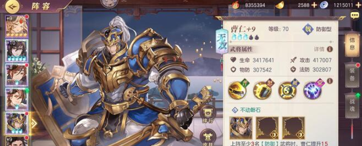 曹仁的养成重点在于提升防御和生命值,装备和战魂选择上优先考虑增加免伤和格挡率的属性。他的星级提升后效果更明显,尤其是达到3星和5星时,控制能力和团队增益会有质的飞跃。前期资源有限的话,可以优先把他升到1火,性价比很高。如果打算长期培养,3火的曹仁在后期依然能扛能打,不会让你失望。