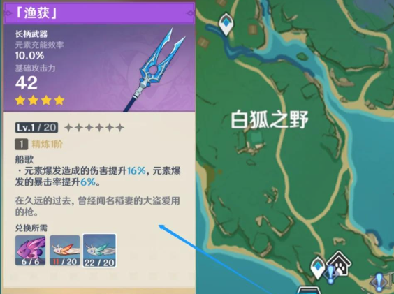 钓鱼能换取的武器目前主要有两把:长柄武器渔获和单手剑灰河渡手。渔获需要在稻妻钓鱼协会兑换,兑换材料包括雷鸣仙、金赤假龙和锖假龙。雷鸣仙只在稻妻踏鞴砂的沉船处刷新,且只在夜晚出现;金赤假龙和锖假龙在璃月或蒙德的多个钓鱼点都能钓到,但需要耐心等待刷新。灰河渡手则要在枫丹钓鱼协会兑换,需要的波波心羽鲈等鱼类分布在枫丹不同水域。