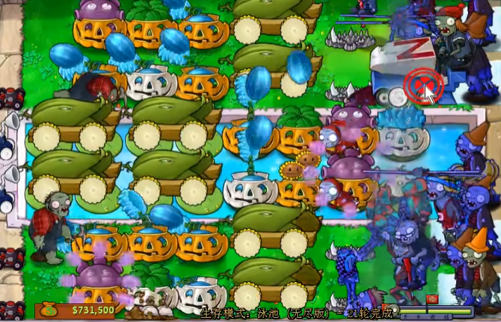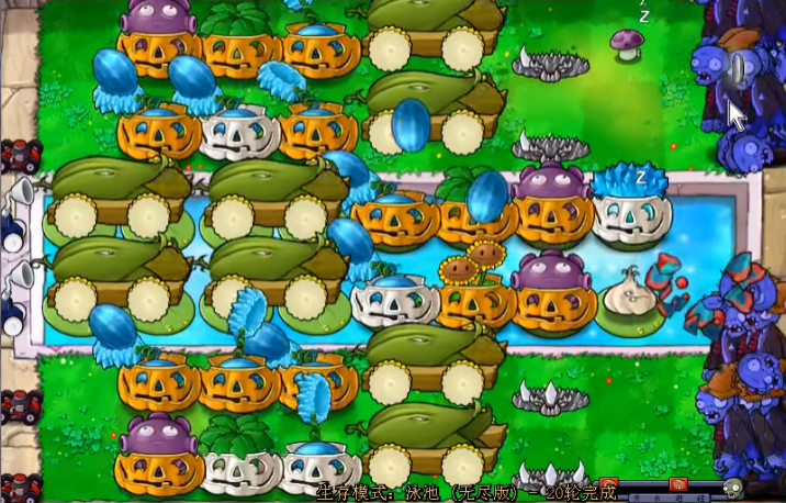 泳池两边的梯子最好搭,先铲掉叶子保护伞和南瓜头,放大蒜把梯子僵尸引到冰西瓜位置。等梯子搭上后赶紧补回植物,岸路的梯子更简单,直接开条直通路让梯子僵尸过来就行。最刺激的是4列紫卡位,得提前放好南瓜头,等梯子僵尸快放梯子时秒种西瓜投手升级冰西瓜,这手速练不好容易翻车哦。