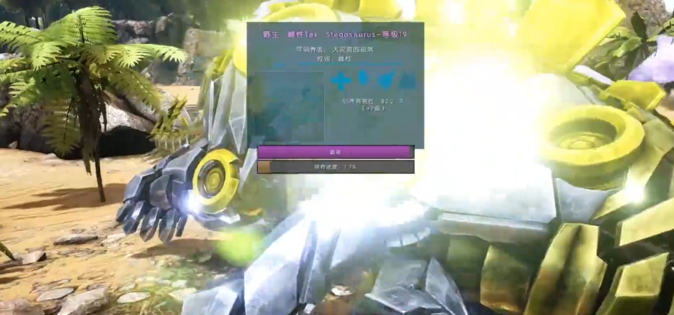 驯好的泰克剑龙可是全能帮手,战斗时能扛能打,平时赶路也稳当。它的金属质感外表在阳光下特别拉风,尾巴一扫能清场小怪。记得多带它采集资源,这家伙背上的尖刺能自动收割浆果和茅草,效率比手动高多了。驯服前记得清空周围威胁,尤其是霸王龙之类的大家伙。