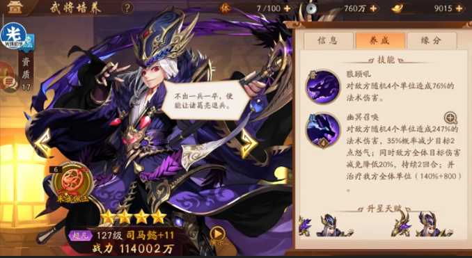 资源分配上要优先培养主力合击武将,比如曹操和司马懿的星级、装备都得跟上,不然效果会大打折扣。辅助武将像郭嘉、荀彧这些,稍微投入点资源就行,重点是保证他们能活着给主力提供支援。装备方面,司马懿适合带暴击加成的武器,曹操则推荐速度装,确保他能先手控场。兵符和战马的选择也得看阵容,控制流就选加命中的,爆发流就选加伤害的。实战中遇到不同阵营要灵活调整,比如打蜀国这种高爆发的,可以多带控制型合击,打断他们的输出节奏;对付吴国的灼烧流,记得用驱散类合击清掉负面状态。
