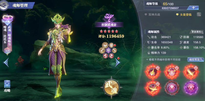 控制系魂师培养需侧重PVP与PVE的双重适配性。比比东拥有群体眩晕的控场能力,火舞则凭借一速优势抢先手施加debuff。独孤博在特定副本中表现突出,其毒伤机制对高血量BOSS有奇效。胡列娜的混乱增伤效果在10万年魂环加持下会产生质变,3层增伤可达90%,但需投入大量资源升至红5星。若缺乏SP魂师,可选用蓝银皇唐三作为控制系过渡,其魂环配置建议1111(猛兽系+巨蟹系混搭),加点以精神属性为主。