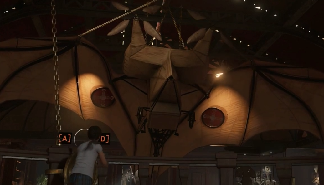 操作上其实并不复杂,但设计得很巧妙。比如爬梯子时得注意节奏,二楼转盘需要连续互动才能完全展开蝙蝠翅膀。救出白皇后后,记得把她拉到两束光对齐的位置,这时音乐会响起,大门自动打开。如果卡关了也别急,多观察环境提示,小劳拉的涂鸦和自言自语都会给出关键线索。