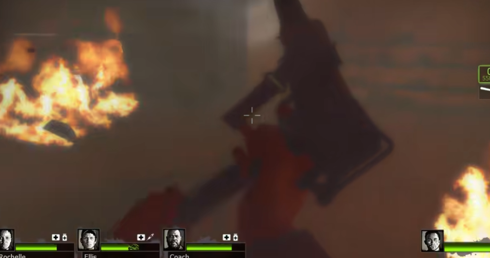 下楼后会遇到电梯,所有人进去后按下按钮,途中电梯会突然停下。开门后外面全是火,别慌,沿着没火的地方走,顺手捡起地上的长枪。这段路僵尸特别多,建议边退边打,别被堵在角落。最后穿过大厅进入对面的安全门就过关了。注意别去碰冒着白烟的门,打开会触发火焰陷阱,白白掉血可太亏了。