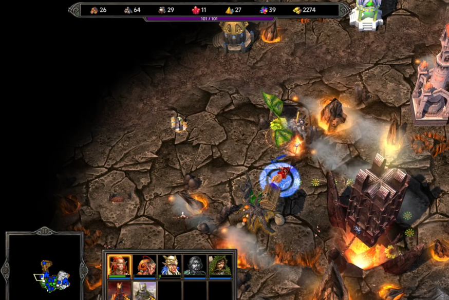 中期发展时,别忘了给他配一些增加魔法值的装备,因为召唤火元素消耗比较大。如果遇到野怪挡路,可以用火元素吸引火力,再用远程单位输出,这样能减少战损。塔兰纳的移动速度不算快,所以尽量别让他单独行动,最好搭配一个副英雄帮忙捡资源和占矿。