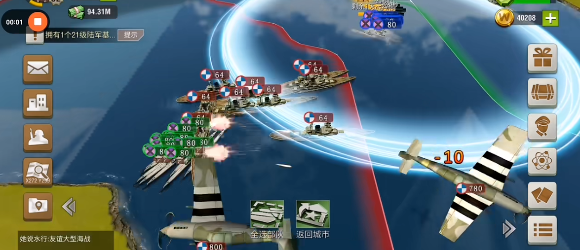 狭窄海域可优先启用具备海峡狙击技能的军官,提升命中率;面对敌方主力舰队时,可采用诱敌深入或包围战术;若实力悬殊,则以潜艇游击消耗对方。海军与其他兵种的协同尤为重要,例如陆军登陆作战需海军火力掩护,空军侦察能为舰队提供视野优势。军官技能如防御强化或火力增幅可显著提升舰队生存和输出能力。