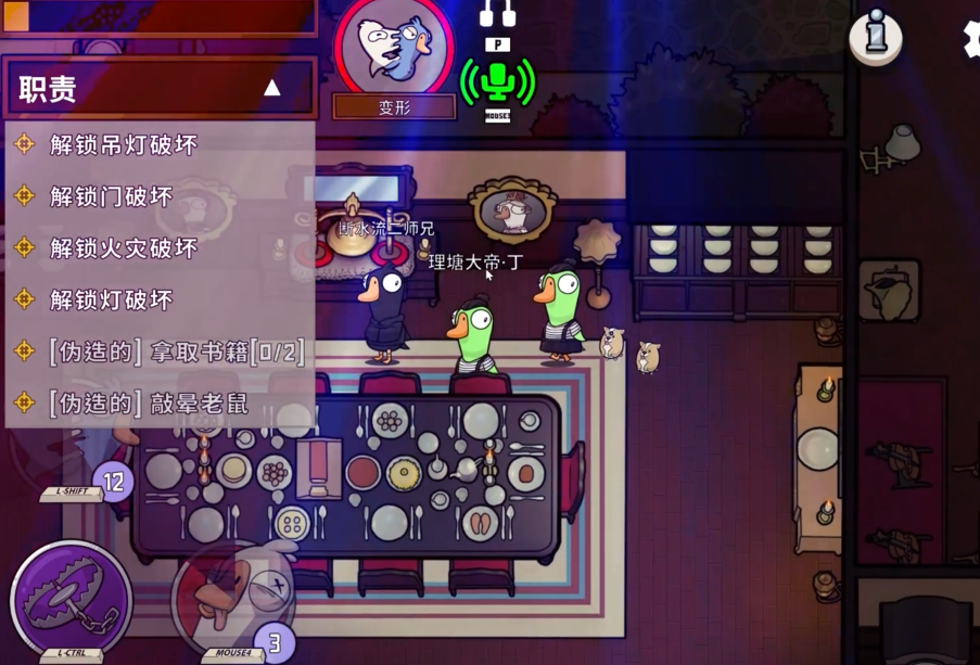 专业杀手击杀后尸体仅对靠近的鹅可见;刺客可在会议阶段通过猜测身份处决玩家;间谍投票独狼时可获知目标身份;静音能封锁玩家会议发言权;爆炸王可安放延时炸弹;变形鸭能复制其他玩家外观。该阵营需合理利用技能制造混乱,同时规避信息暴露风险。