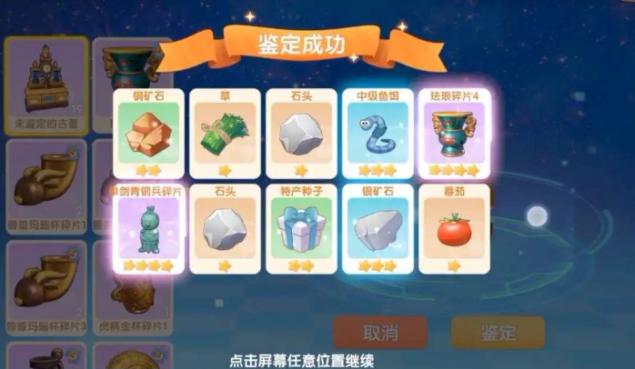 未鉴定的古董是一种通过钓鱼等途径获得的特殊道具,其作用需要通过鉴定解锁。鉴定流程需找到NPC大力,使用其商店中的鉴定仪进行操作。鉴定后可获得古董碎片、素材或金豆道具,碎片集齐后可兑换完整装饰品。