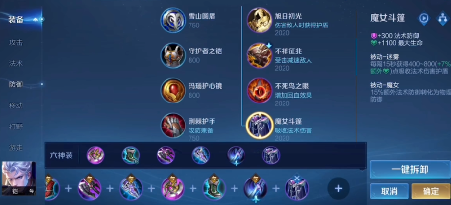 常见的六神装组合可能是抵抗之靴、暗影战斧、宗师之力、无尽战刃,然后再补上一两件防御装备,比如反伤刺甲或者魔女斗篷,最后一件装备则可以灵活选择保命装,比如贤者的庇护或者名刀司命。这样的铠,既有秒杀后排的资本,又有一定的硬度,不会被不明AOE轻易秒掉,在团战中能进退自如。