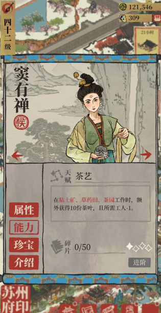 适合从事茶树种植与相关茶业活动的角色具有明确的设定,其中茶学士清谷与茶博士清泉是直接与茶田经营关联的特殊人物。游戏背景讲述了文徵明绘制江南百景图并化身画灵守护图卷世界的故事,玩家需要重建明朝江南的繁华,而茶文化的经营是重现江南风物的重要一环。茶学士清谷与徒弟茶博士清泉挑选雨水丰沛的山坡开辟茶田,清泉痴迷研制各色花草茶,这构成了他们专属的建筑回忆与剧情线索。从游戏叙事与角色设定上看,清谷与清泉是负责茶树种植与茶品研发的天然人选。