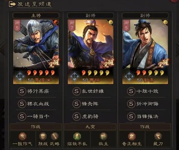 输出向顶配组合士别三日与用武通神,适合双核输出的盾兵阵容,用武通神的持续谋略伤害可与郝昭自带灼烧形成联动,叠加后对藤甲兵有克制效果,士别三日的规避机制让郝昭在团战中站场更久,持续触发灼烧与群体治疗,搭配曹操、司马懿组成的太尉盾,能在对抗主流骑兵、弓兵队伍时保持优势,兵书选择虚实、援其必攻、掩虚,进一步提升续航与坦度,让郝昭兼顾承伤与输出职责。