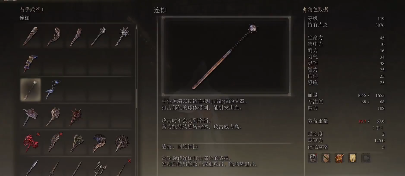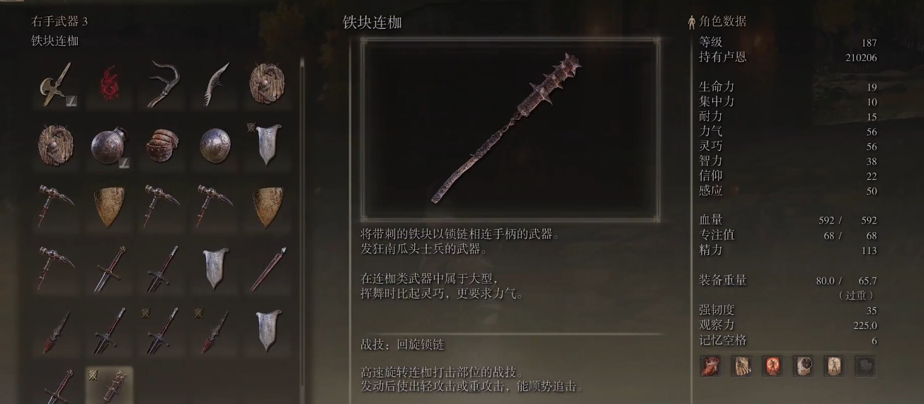 从战术角度来看,连枷类武器在PVE和PVP中各有优势。其攻击动作不易被弹反,且部分型号能造成异常状态积累。新版加强后的防御反击系统使连枷的实用性显著提升,快速出手的防御反击配合不错的削韧性能,在对抗人形敌人时尤为有效。但需注意连枷的攻击范围较短,需要玩家精确掌控距离。插入连枷防御反击动作演示图片连枷在艾尔登法环武器体系中占据独特位置,虽然不属于主流武器类型,但精心搭配后能产生意想不到的战斗效果。对于追求特殊战斗体验的玩家,收集并熟练掌握各类连枷的使用技巧,能够为游戏过程增添更多战术可能性。