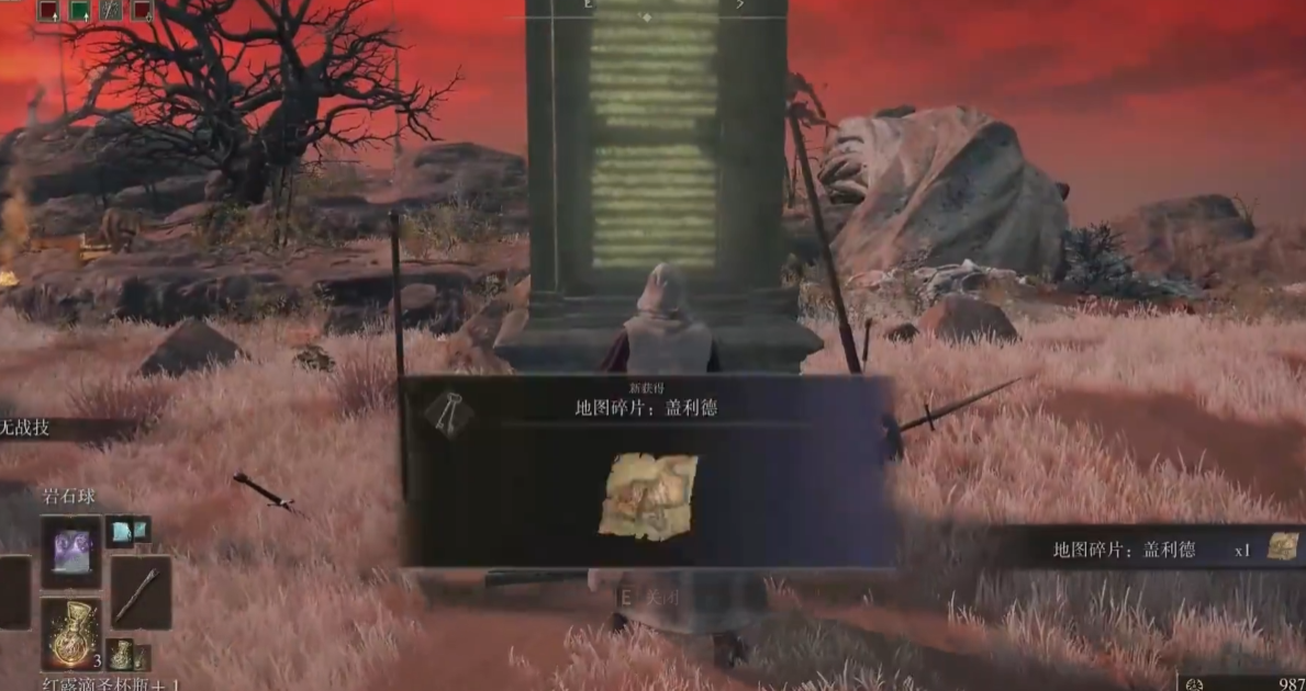 盖利德位于艾尔登法环地图的东南部,要前往盖利德,玩家需要从宁姆格福的爱奥尼亚沼泽(深处)地区出发,沿着特定路线前进。具体路线为:从奇列姆废墟向南行进,经过盖利德大道南方,最终在道路右侧的石碑处可获取盖利德地图碎片。这片区域的地图碎片位于一处明显石碑旁,靠近盖利德大道南方的赐福点,探索时需注意周围可能存敌人干扰。