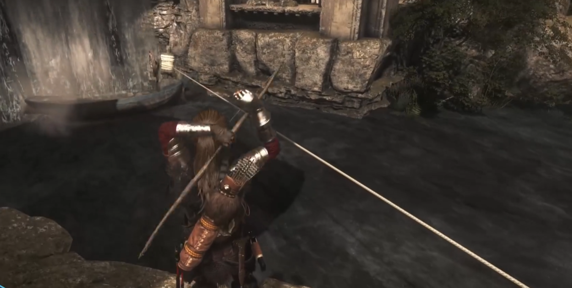 进入蓄水池后,技能书位于中央塔楼,但常规路径已坍塌。第一步需前往左侧通道,将油桶搬运至门口并引爆,炸开第一道水门。随后返回大厅,在右侧找到另一个油桶并将其放置于竹筏上。跳上长木机关触发水阀,水流会推动木筏向左移动至水车旁,需等待木筏回程至水门附近时开枪引爆油桶,从而打开第二道水门。