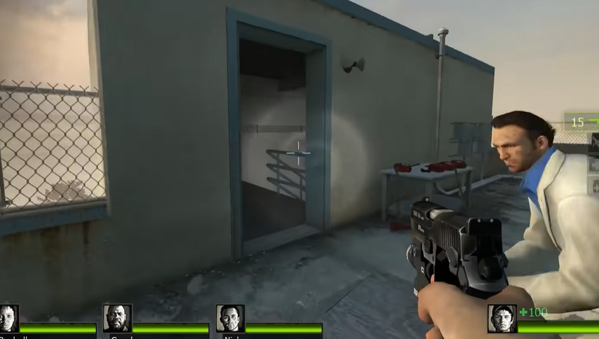 离开安全屋后需保持队伍紧凑移动,优先清理走廊两侧房间内的零星感染者以获取补给。遇到火焰封锁区域时,必须从右侧房间破窗绕行,直接穿越火海会造成持续伤害。电梯事件是首个防守节点,建议在电梯内集中火力抵御尸潮,注意节省弹药并优先击杀特殊感染者如Smoker和Boomer。电梯下降过程中会因故障停滞,需手动开门进入着火的楼层,快速拾取地面上的长枪并沿右侧无火路径突围。