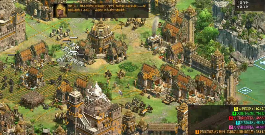 资源管理是战役推进的关键,玩家需保持村民的持续生产,并平衡食物、木材、黄金和石头的采集比例。升级到封建时代和城堡时代可以解锁更先进的单位和科技,提升整体实力。在经济发展中,优先保证农田和伐木场的效率,并在控制新区域后转移经济设施,利用安全环境加速资源积累,以支持长期的军事行动。