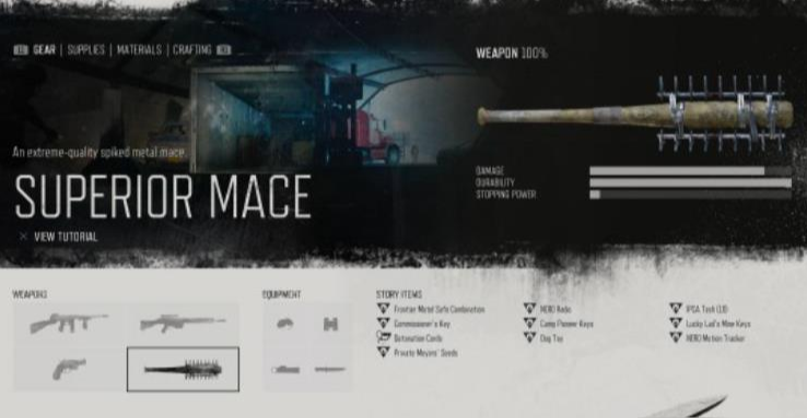 制作带钉球棒需要先完成游戏前期的主线任务扫荡埋伏营地,在清理完喀斯喀特无线电台的敌人并进入地下室拿到地图后,系统便会解锁带钉球棒的合成配方。进行这个任务时,通常能在营地或附近直接拾取到所需的棒球棍和钉子,你可以立即打开制作菜单合成你的第一把带钉球棒。