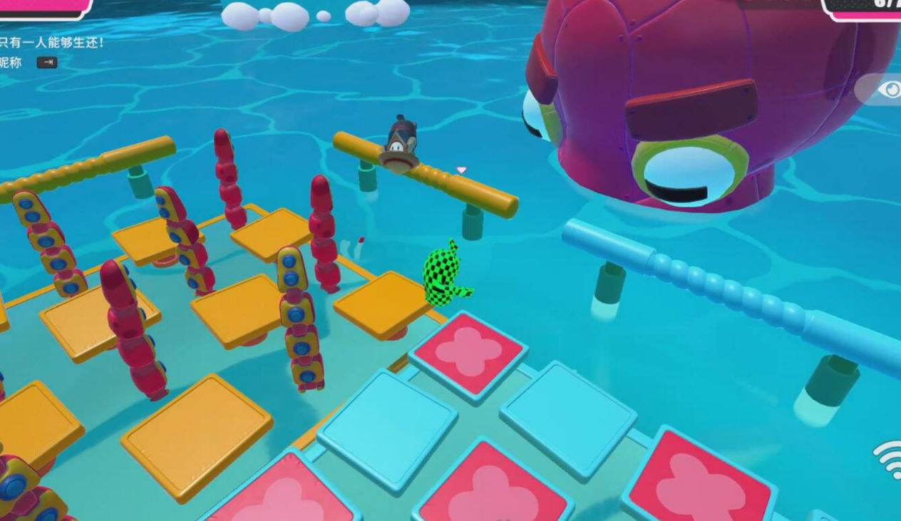 多人共存时可采用抱团站位策略,与其他糖豆人保持近距离聚集,相互形成掩护。犀牛锁定目标时会优先选择单个孤立目标,群体站位能分散犀牛攻击目标,即便被犀牛撞到,也只会被撞开倒地,不会直接飞出场地,大幅降低淘汰风险。但要注意保持适度间距,避免因群体拥挤导致无法及时躲避,同时警惕多只犀牛同步冲撞的情况,此时要快速观察犀牛冲击方向,朝两只犀牛冲撞的夹角空隙移动,利用交叉间隙寻找安全空间。