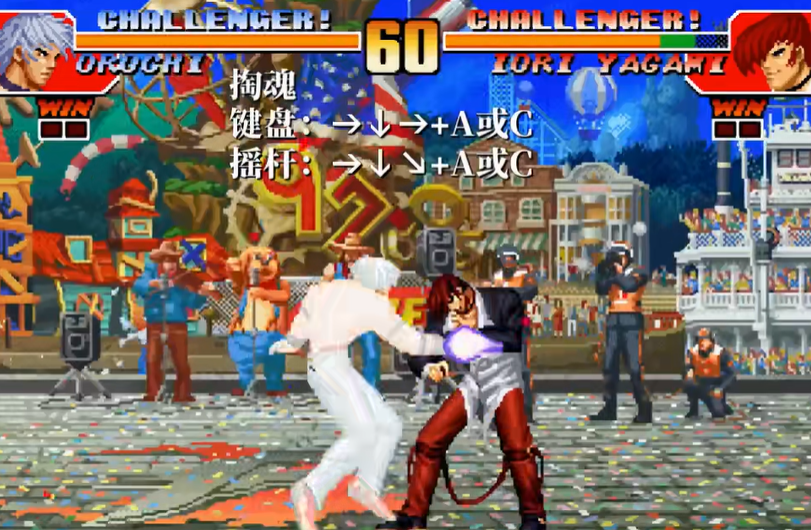 大蛇作为最终BOSS拥有两个超强必杀技,分别是掏魂和阳光普照。想要释放掏魂,你需要快速输入→↓↘+轻拳(A)或重拳(C)。这个技能的特点是吸附效果,一旦命中对手就无法防御,适合近距离压制。而阳光普照的指令是↓↙←+轻拳(A)或重拳(C),这